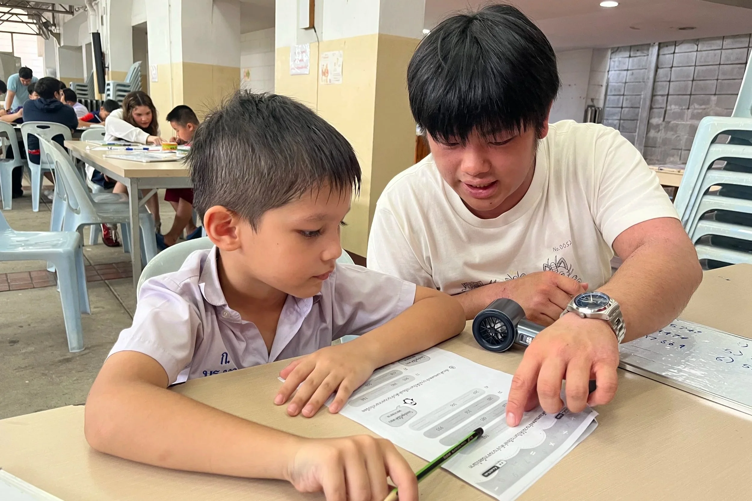 Samyan NewGen (SYNG), launched in 2020, is Imagine Thailand Foundation’s education program serving the Samyan community in Bangkok. Despite being near one of Thailand’s top education institutions, many families in this area still face limited educational opportunities. SYNG was created to bridge that gap. What began with just 8 students has now grown to around 50. Each season, over 60 volunteers dedicate their time across three 12‑week terms annually. Our students receive focused instruction in Mathematics, Thai, and English, along with advanced tutoring for older students. Classes are held in small groups, providing the supportive environment students need to thrive.